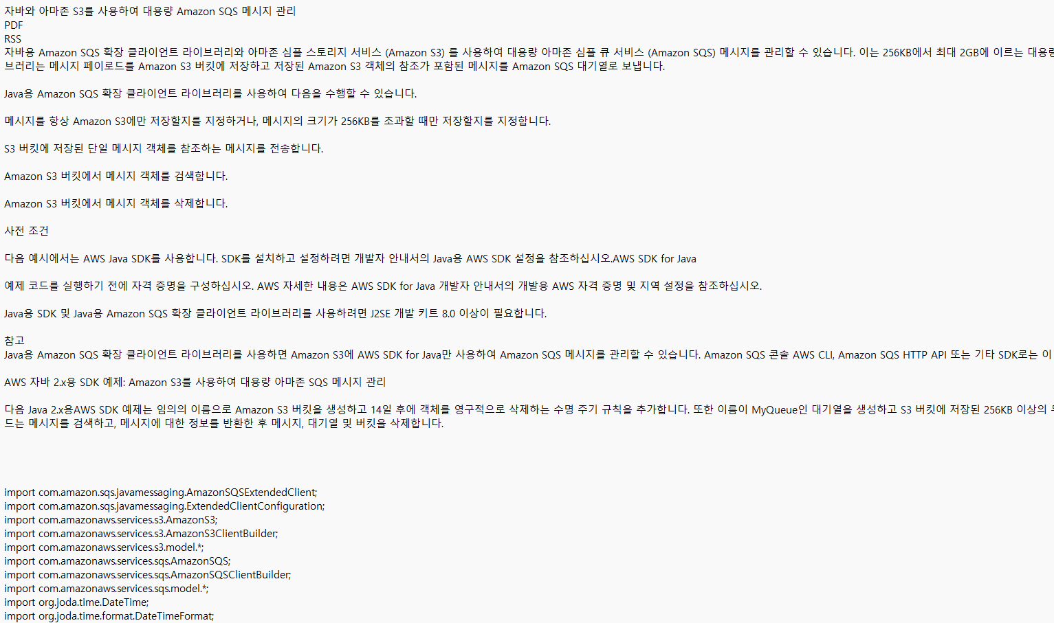 하지만.. 큰 메시지를 보낼 때는 제약이 있고 AWS는 S3를 이용해 큰 메시지를 전송하도록 안내한다.