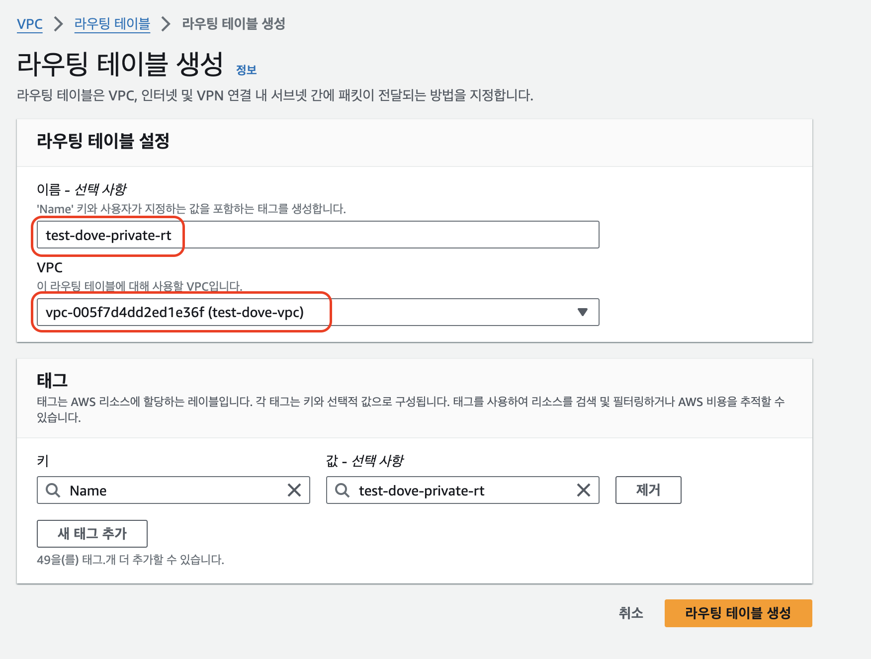 - 이름 태그: 원하는 VPC이름 입력